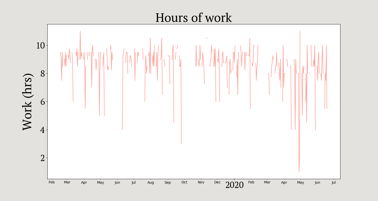 I like the healthy amounts of vacation time, and on second thoughts I think the effect visible from February (after my return from a too-short paternity leave) is probably more to do with being a first-time parent than the lockdown per se.